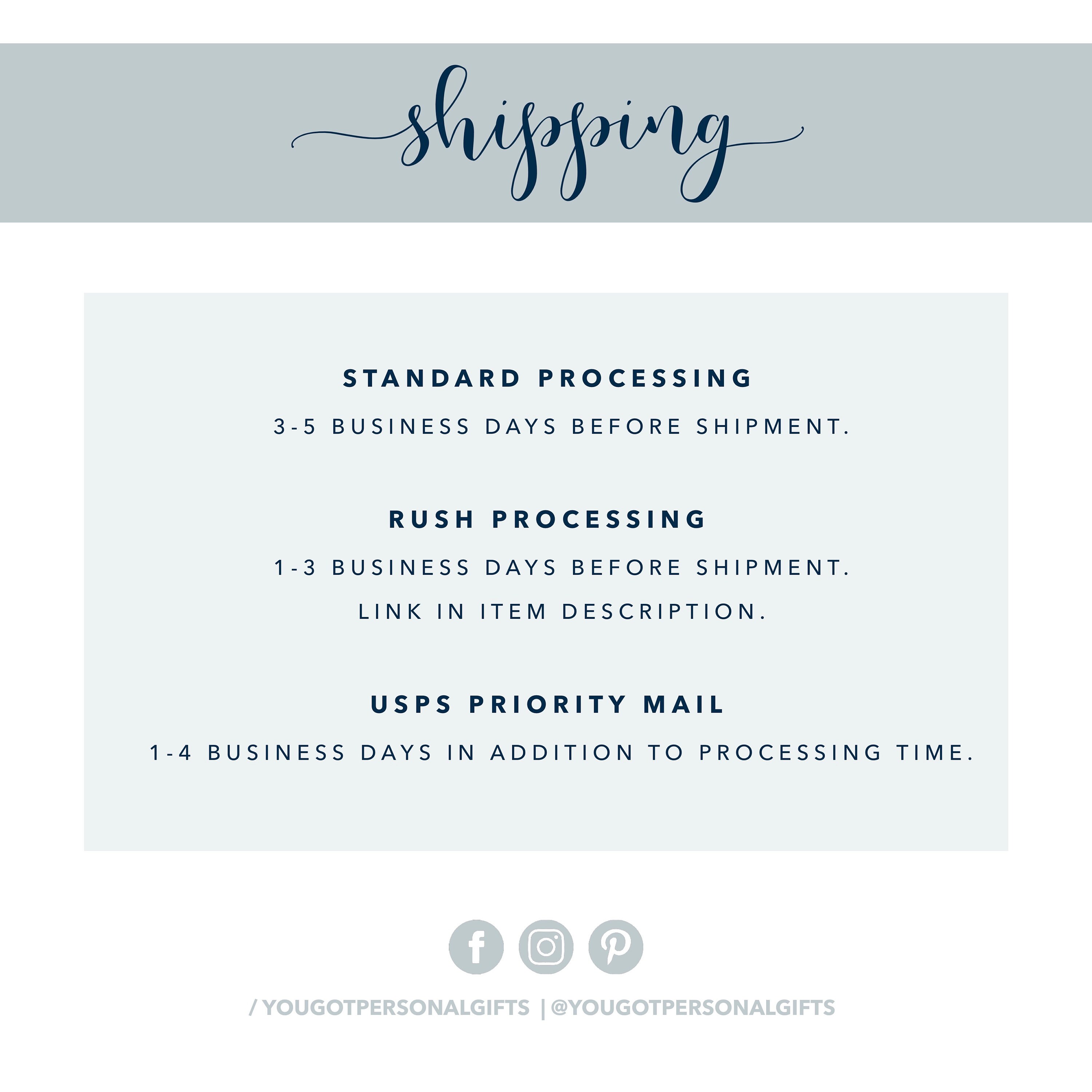 • Shipping via USPS Priority Mail will be an additional 1-4 business day